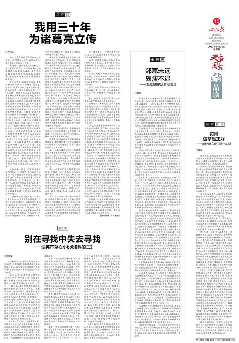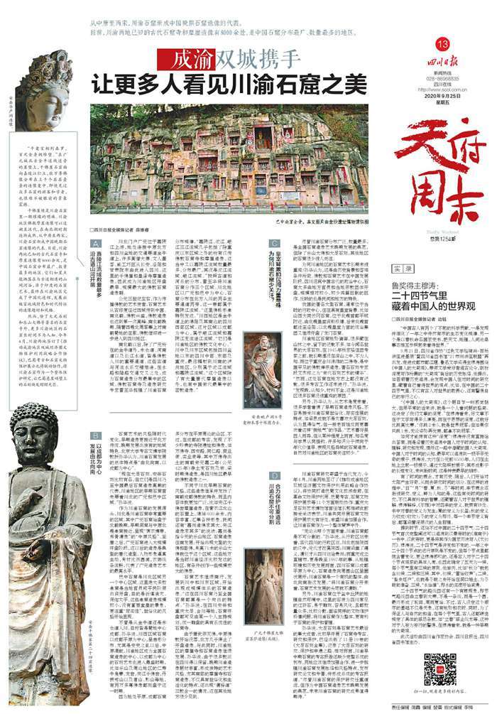 封面版立足大文化,关注文化界特别是四川文化界中的大事要事新鲜事,传递人文色彩浓厚的历史文化新知。