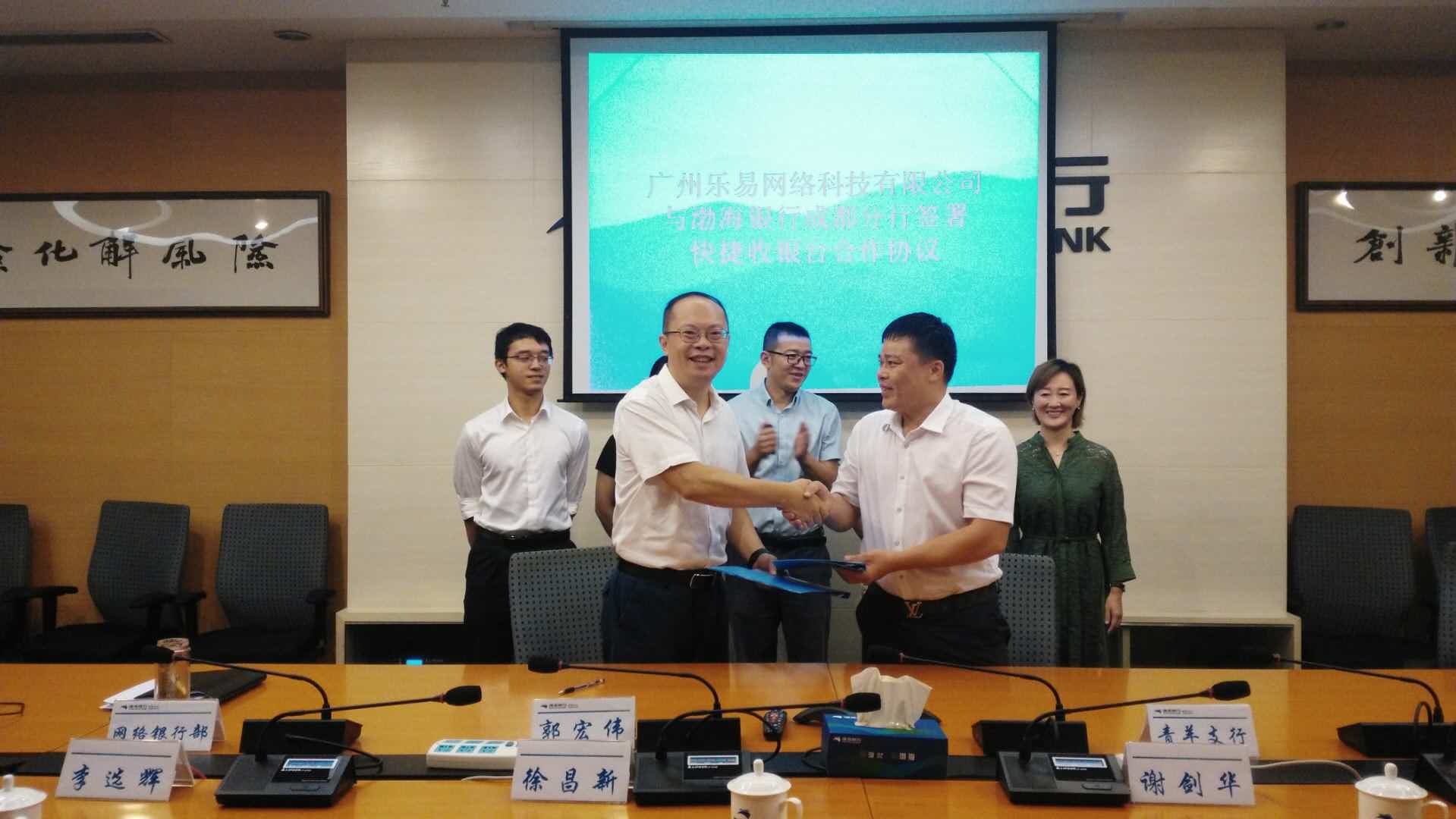 8月3日,渤海银行股份有限公司成都分行与广州乐易网络科技有限公司签署了移动支付结算业务战略合作协议。双方确定了渤海银行成都分行为广州乐易网络科技有限公司商户平台商家、消费者会员提供微信支付、支付宝支付、银联二维码、QQ 钱包、京东钱包、翼支付等主流移动渠道聚合支付账户资金结算、资金存管等业务。