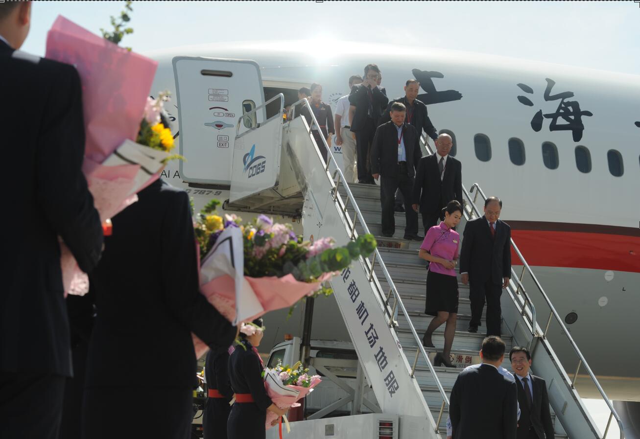 9月28日上午11时许,经过两个多小时的飞行,来自上海的FM9787次航班降落在成都双流国际机场,东方航空首架波音787飞机成功首航。至此,成都双流国际机场集齐了国内“四大航”——国航、东航、南航、海航的波音787飞机。