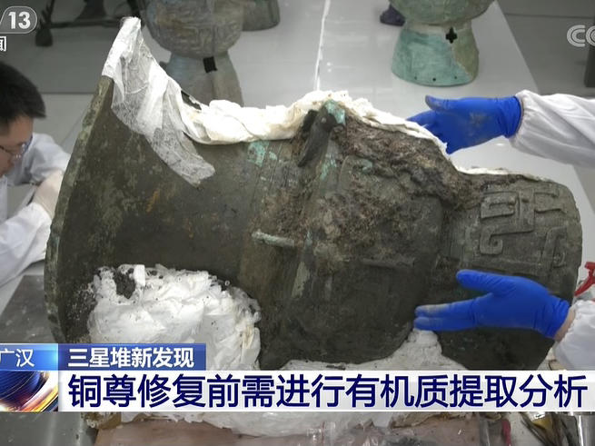 三星堆3号坑铜尊初露尊容,显示三星堆文明强大吸引力