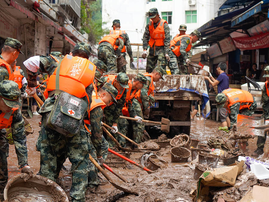 四川通江:洪水消退千人清淤 力争最短时间内恢复正常秩序