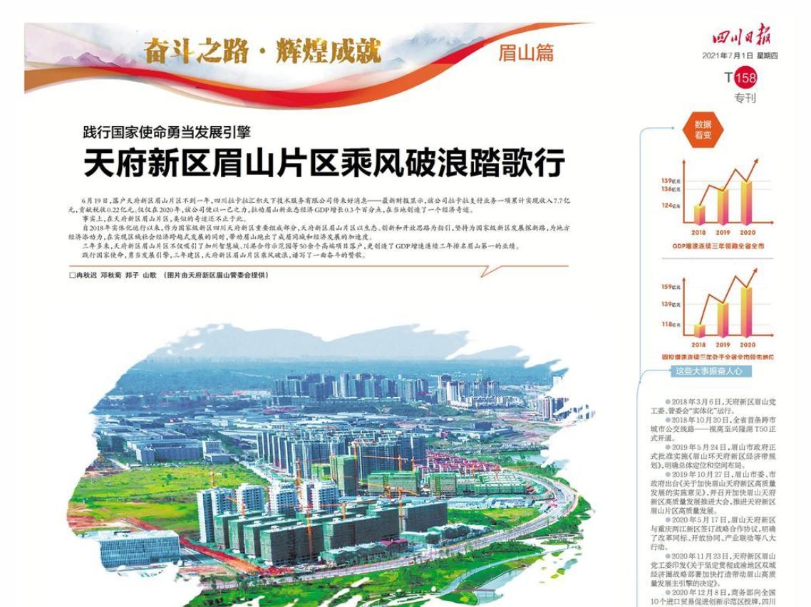 作为国家级新区四川天府新区重要组成部分,天府新区眉山片区以生态、创新和开放思路为指引,坚持为国家级新区发展探新路,带动眉山跑出了成眉同城和经济发展的加速度。