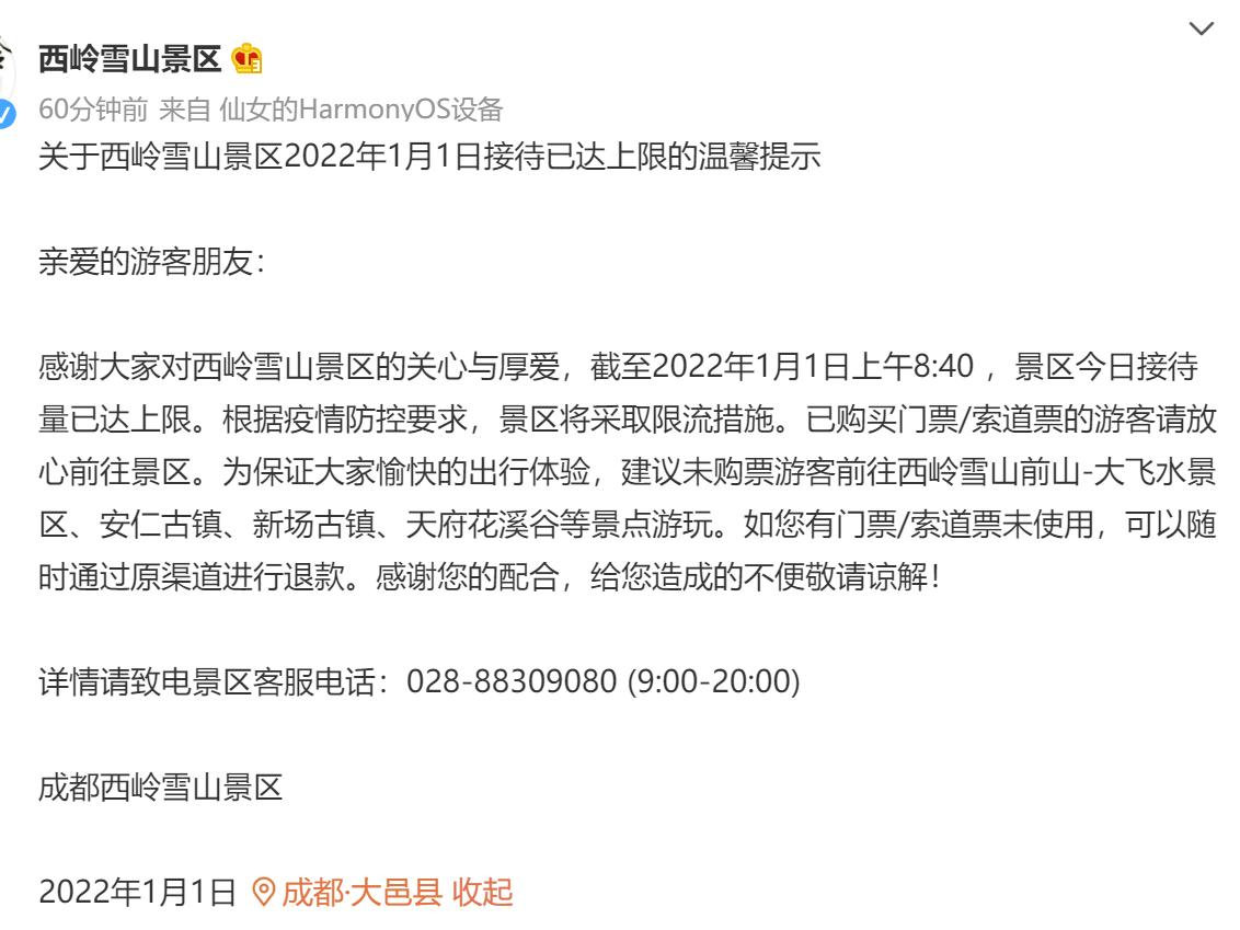 游客请注意!西岭雪山今日接待已达上限,景区已实行限流措施