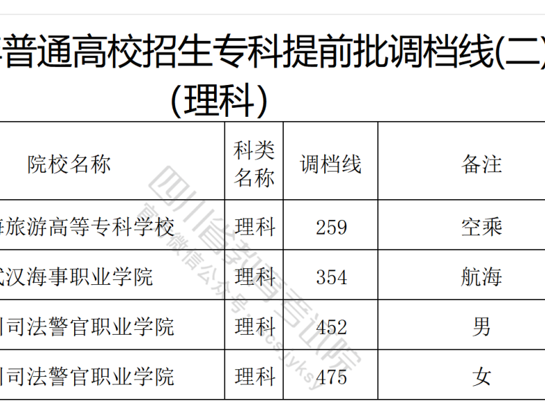 四川省2024年普通高校招生专科批调档线出炉
