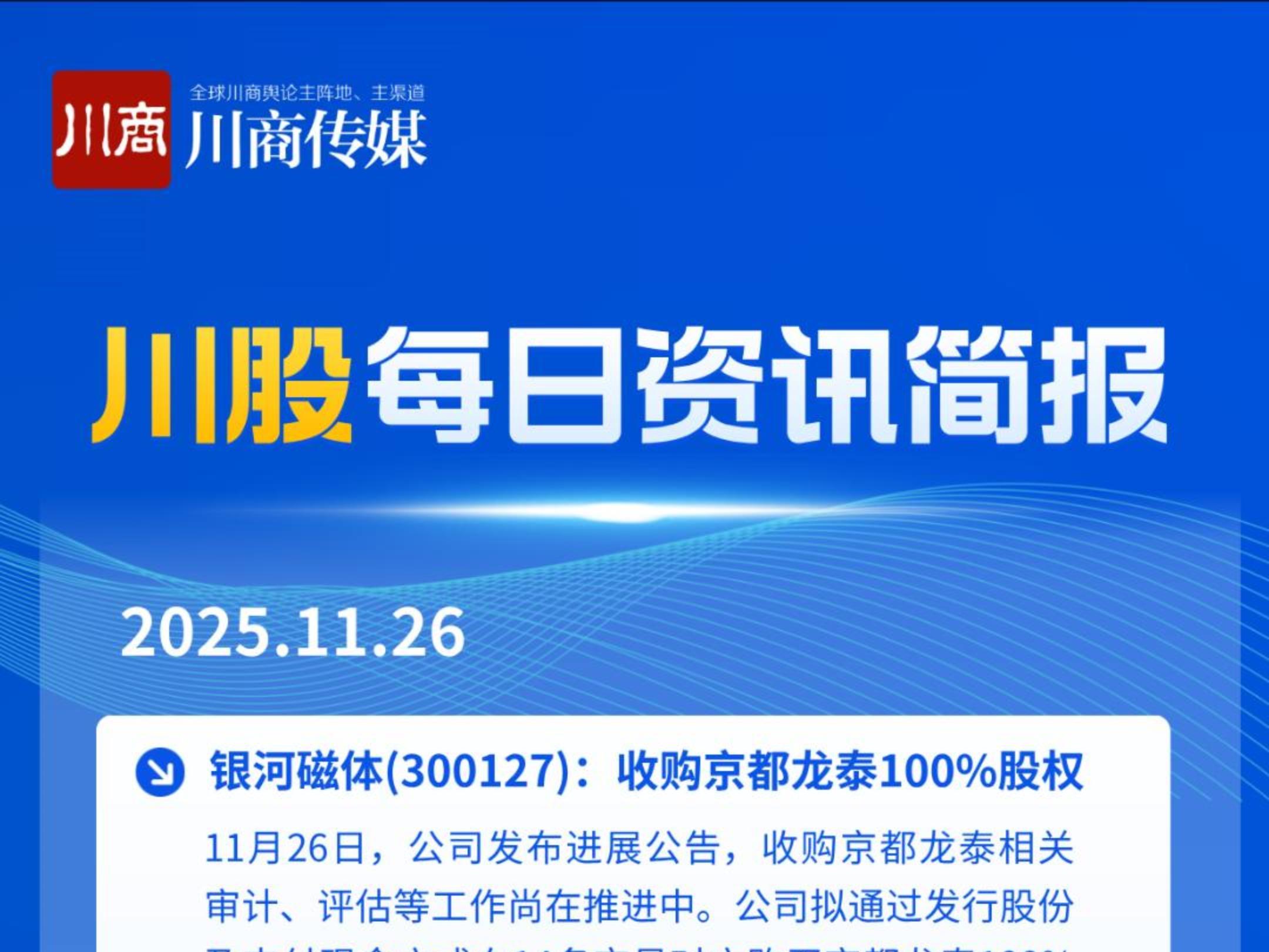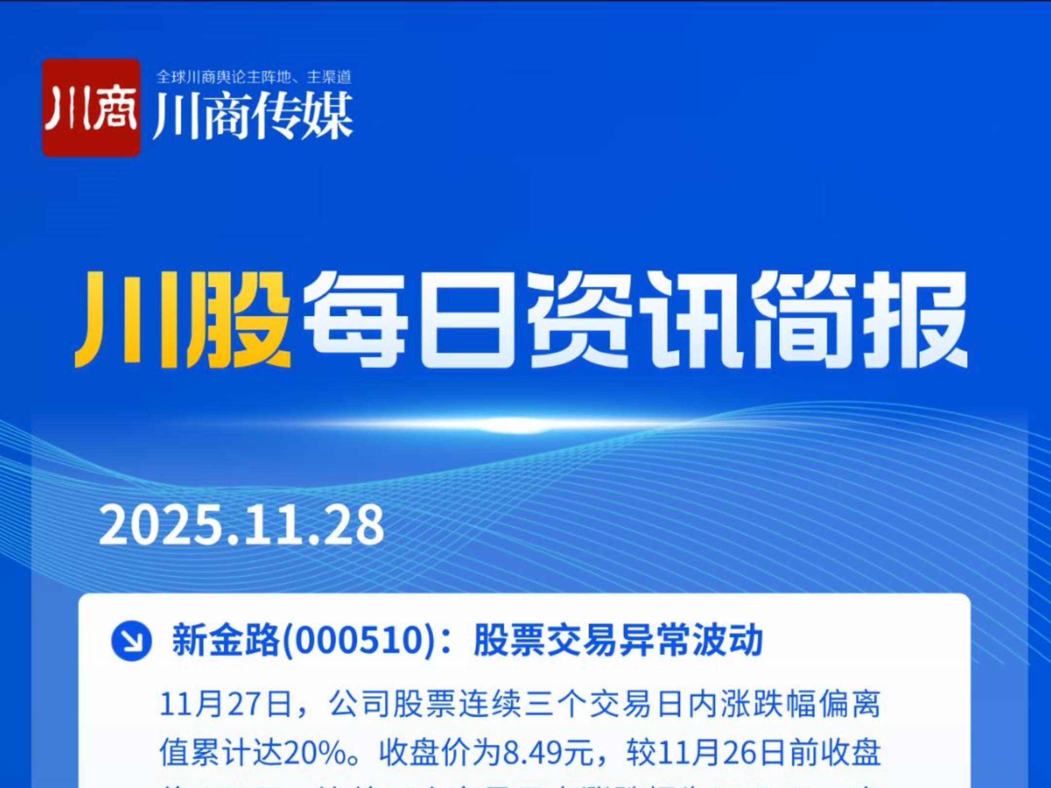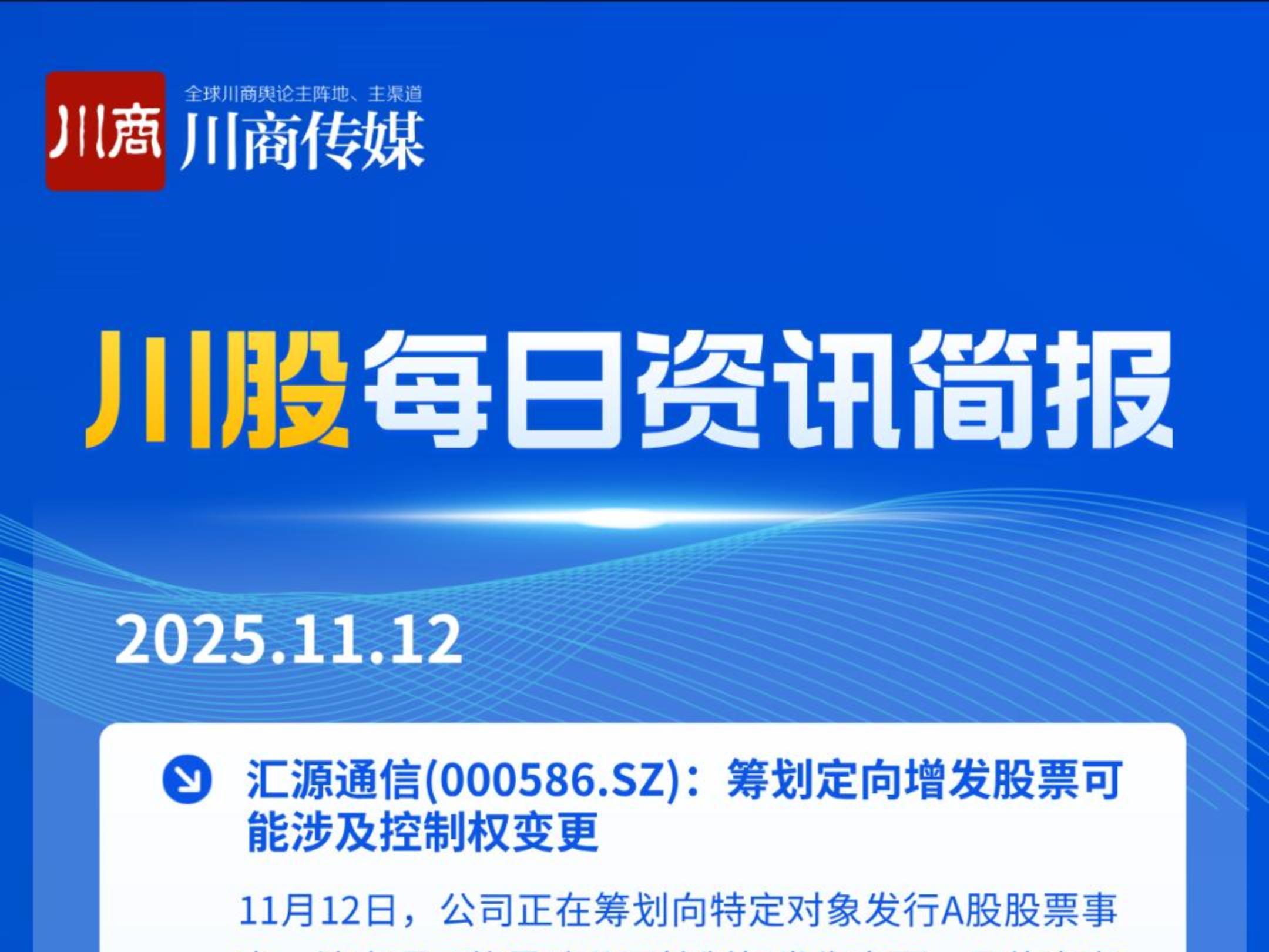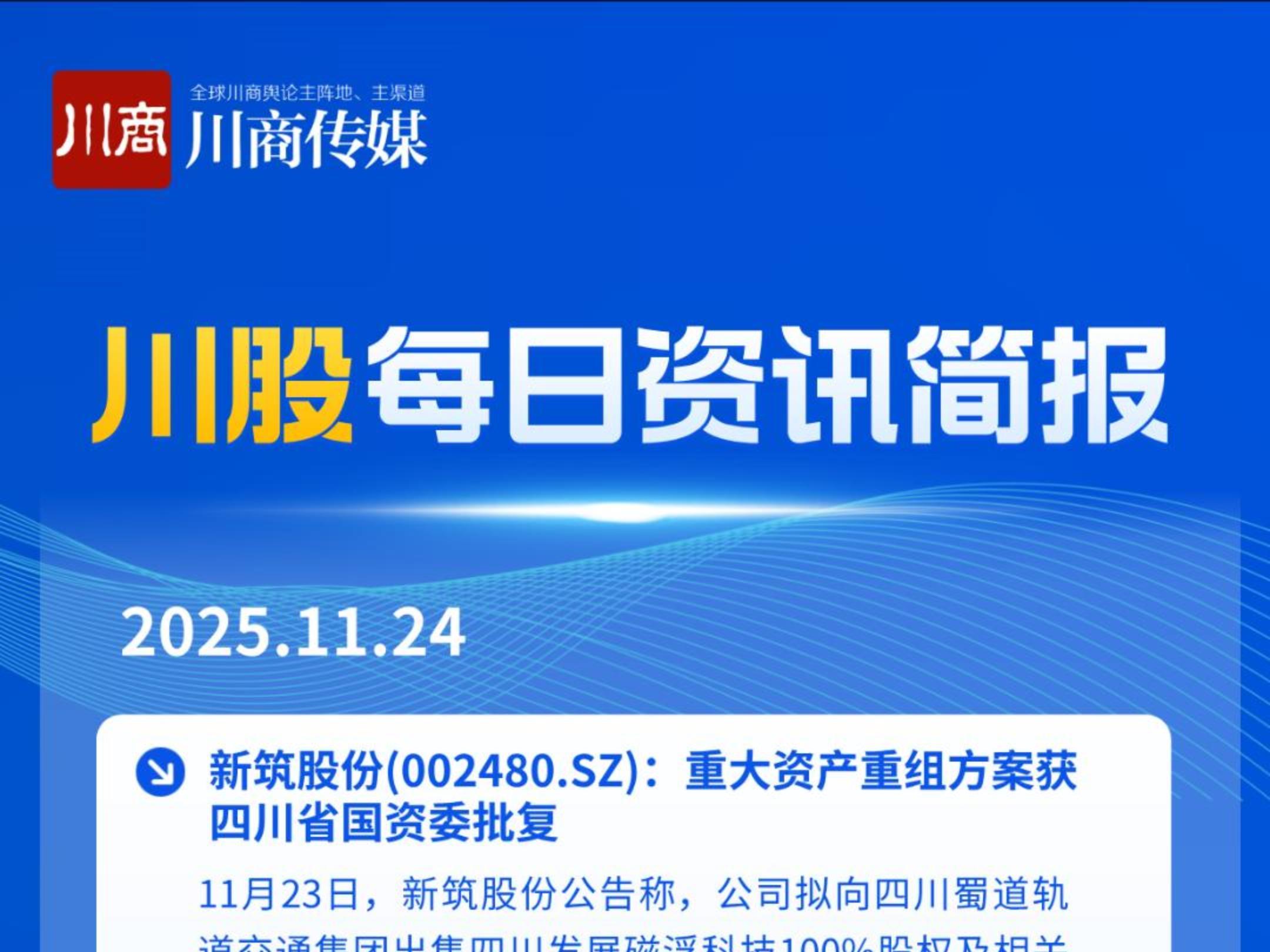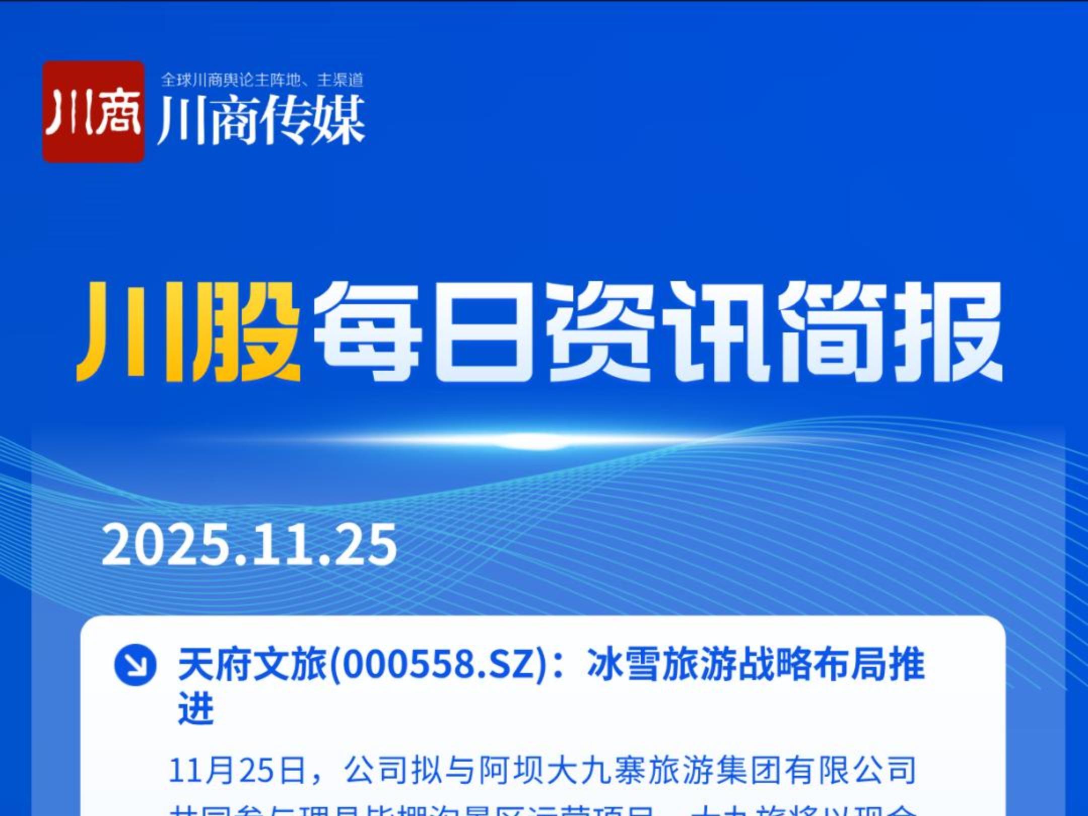 川股快讯:涉天府文旅、国城矿业、北化股份、广汇物流、成都银行等公司