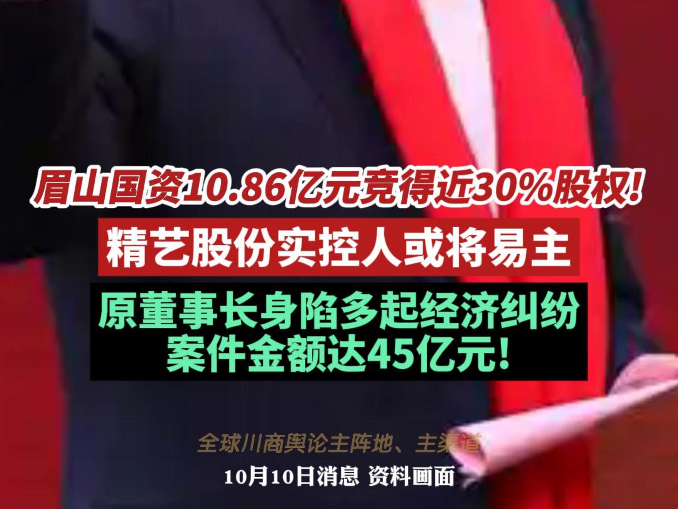 眉山国资10.86亿元竞得近30%股权!精艺股份实控人或将易主!