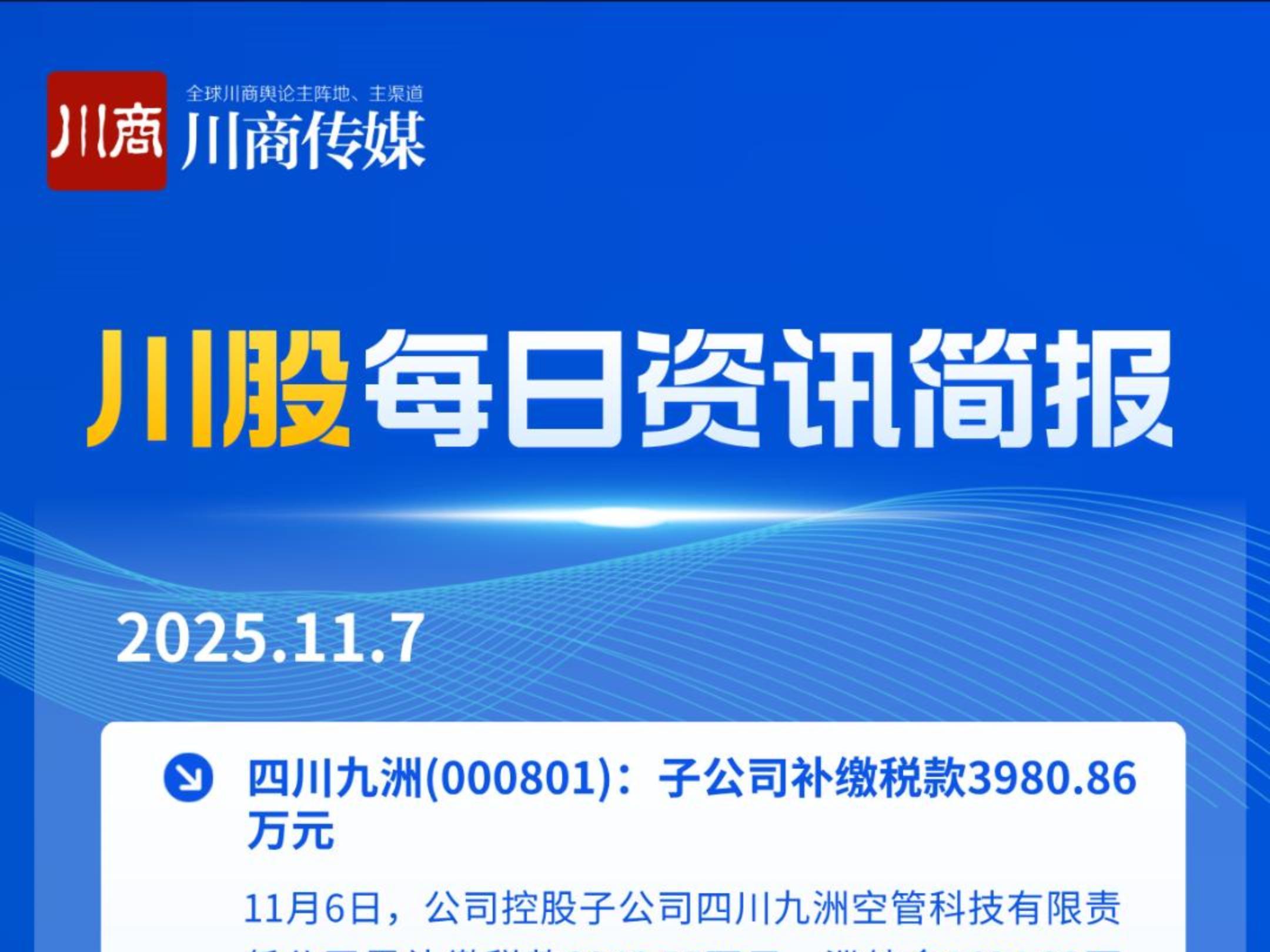 川股快讯:涉四川九洲、四川双马、五粮液、金时科技、安宁股份等公司