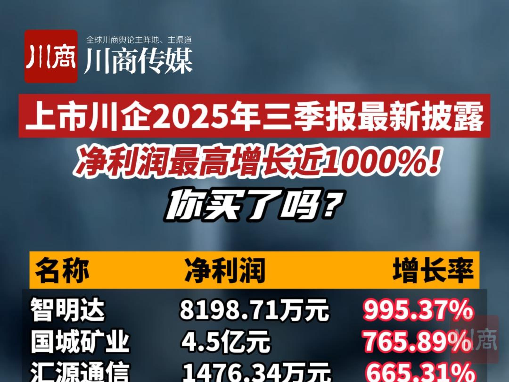 上市川企2025年三季报最新出炉!净利润最高增长近1000%!
