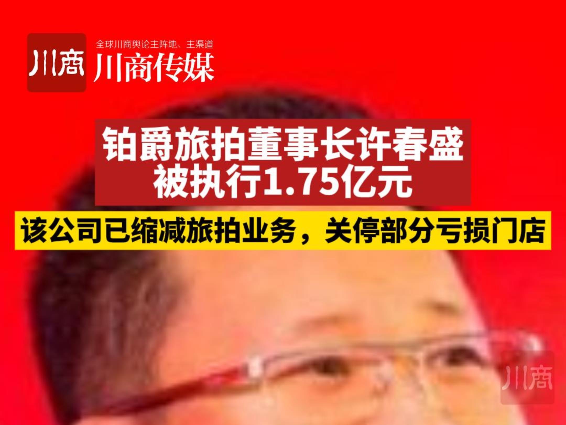 铂爵旅拍董事长许春盛被执行1.75亿元!