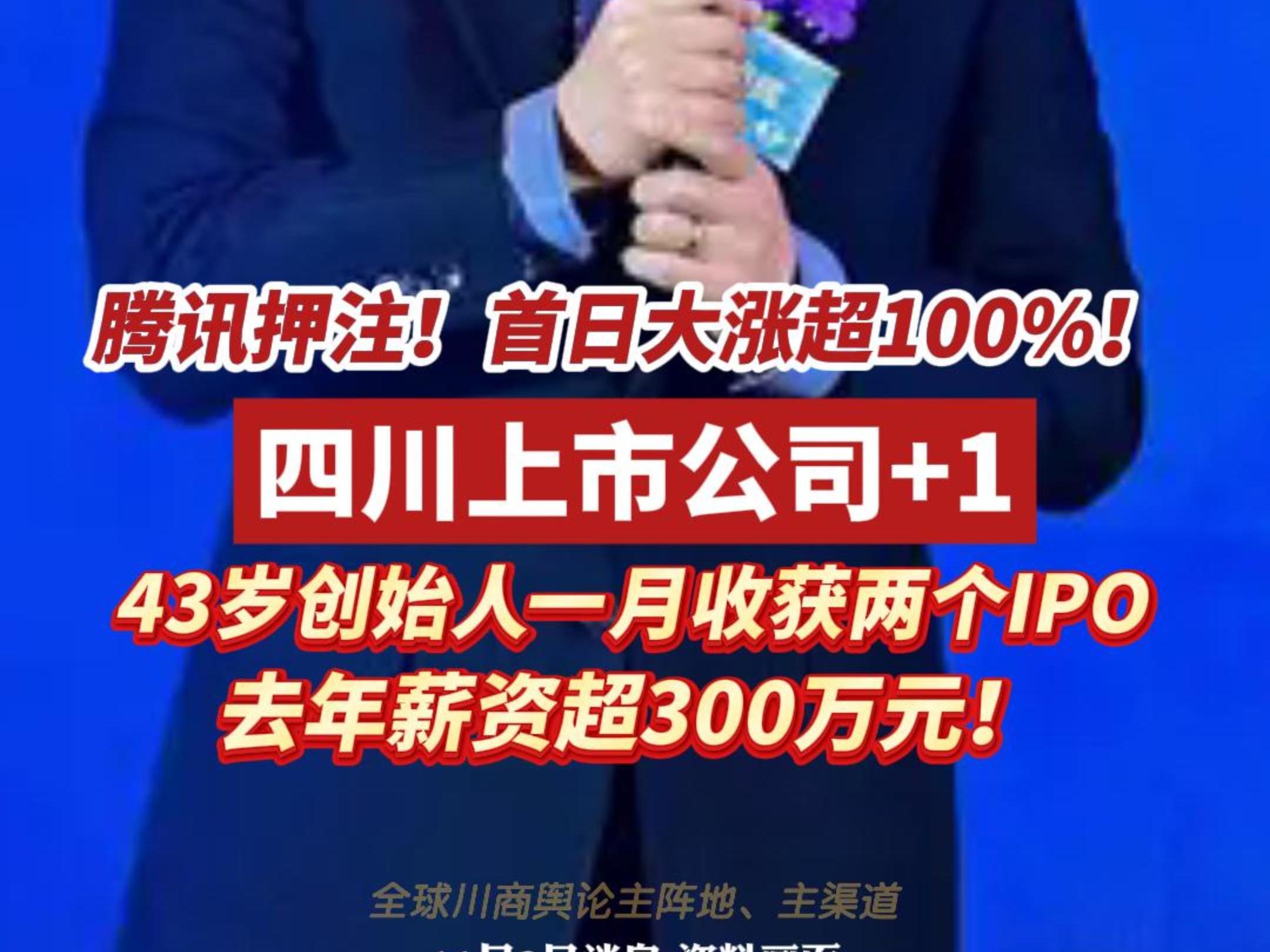 腾讯押注!首日大涨超100%!四川上市公司+1!