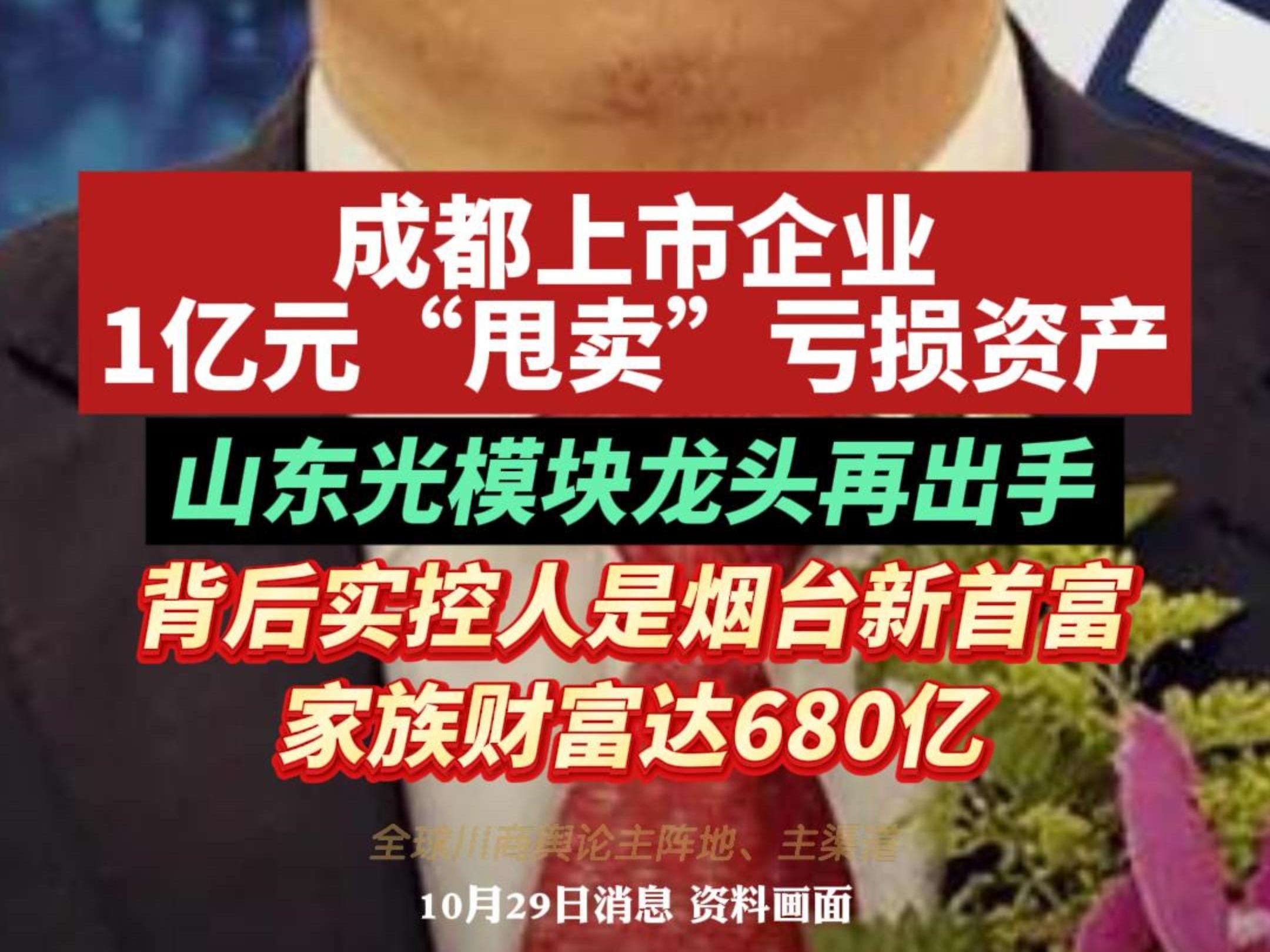 成都上市企业1亿元“甩卖”亏损资产!接手人是烟台新首富!