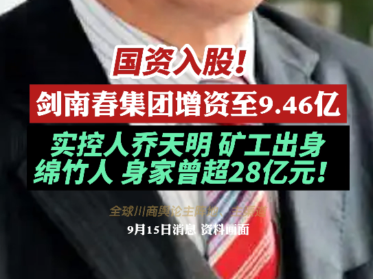 国资入股!剑南春集团增资至9.46亿!