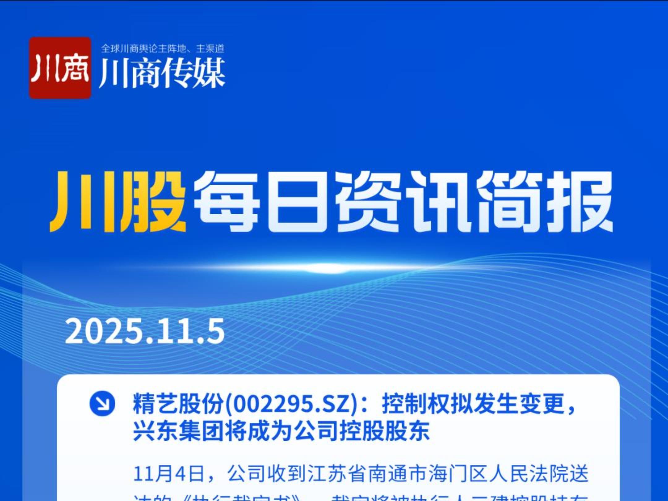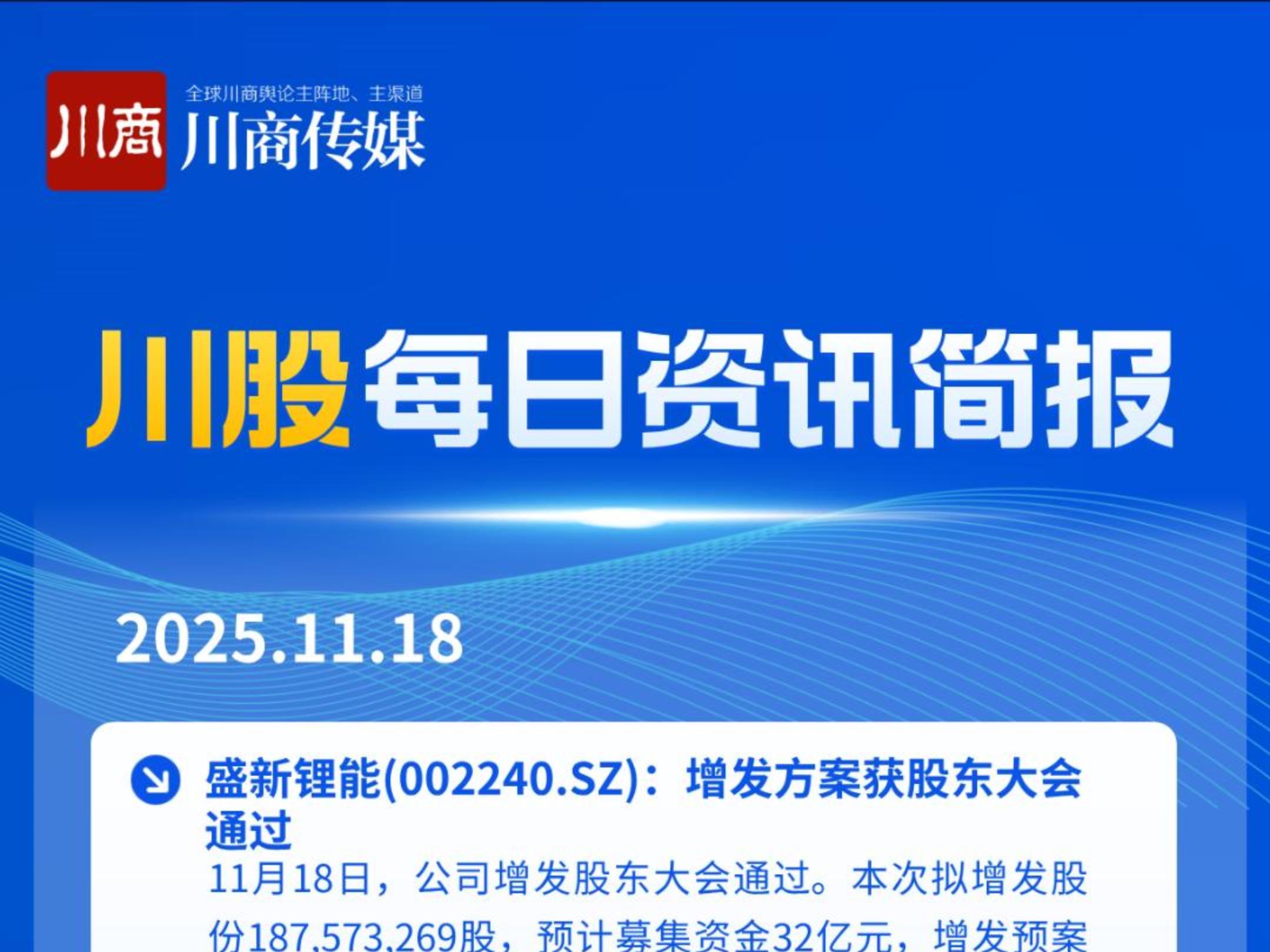 川股快讯:涉新易盛、华西证券、成都先导、雅化集团、天齐锂业等公司