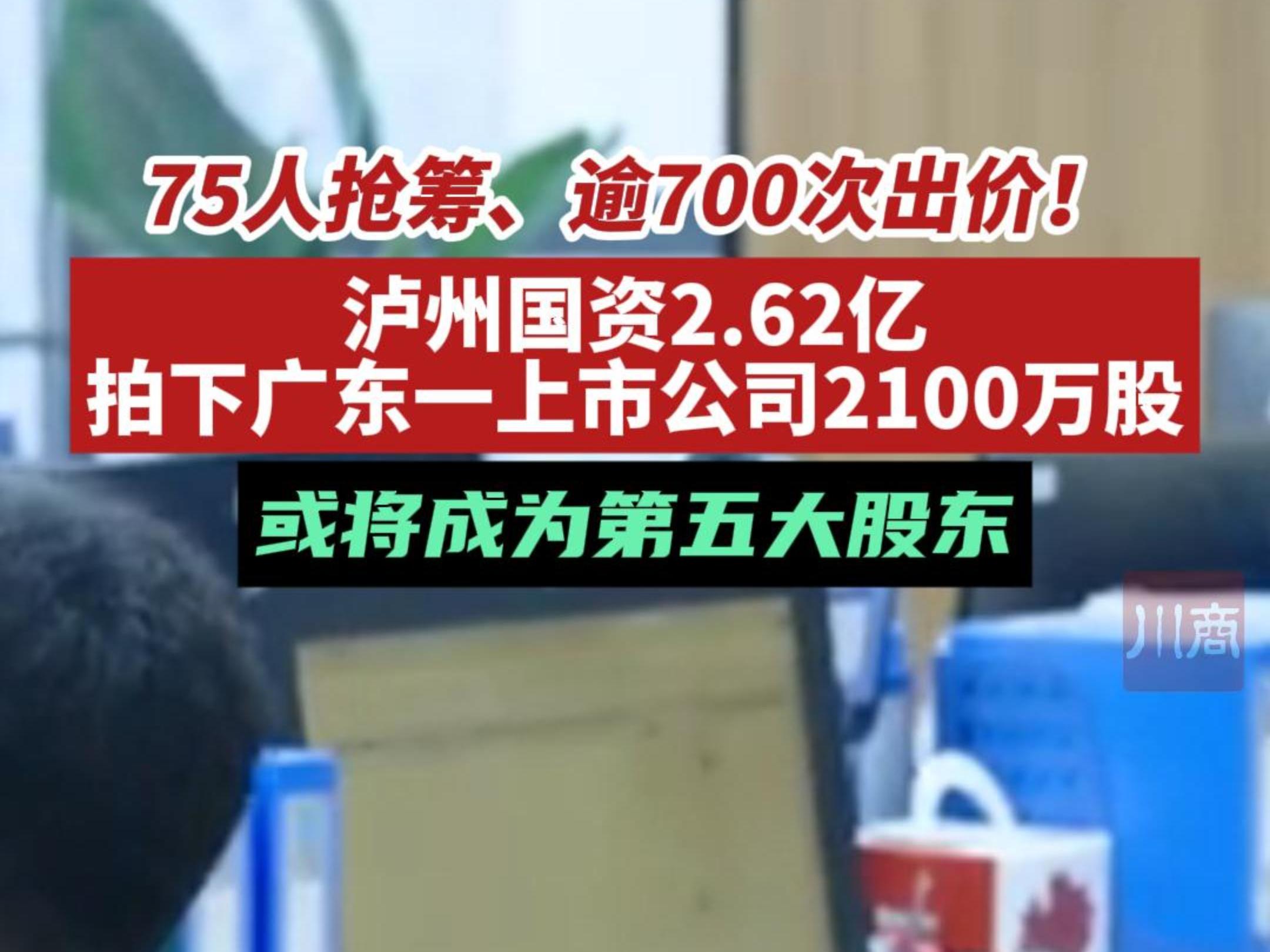 泸州国资2.62亿拍下广东一上市公司2100万股!