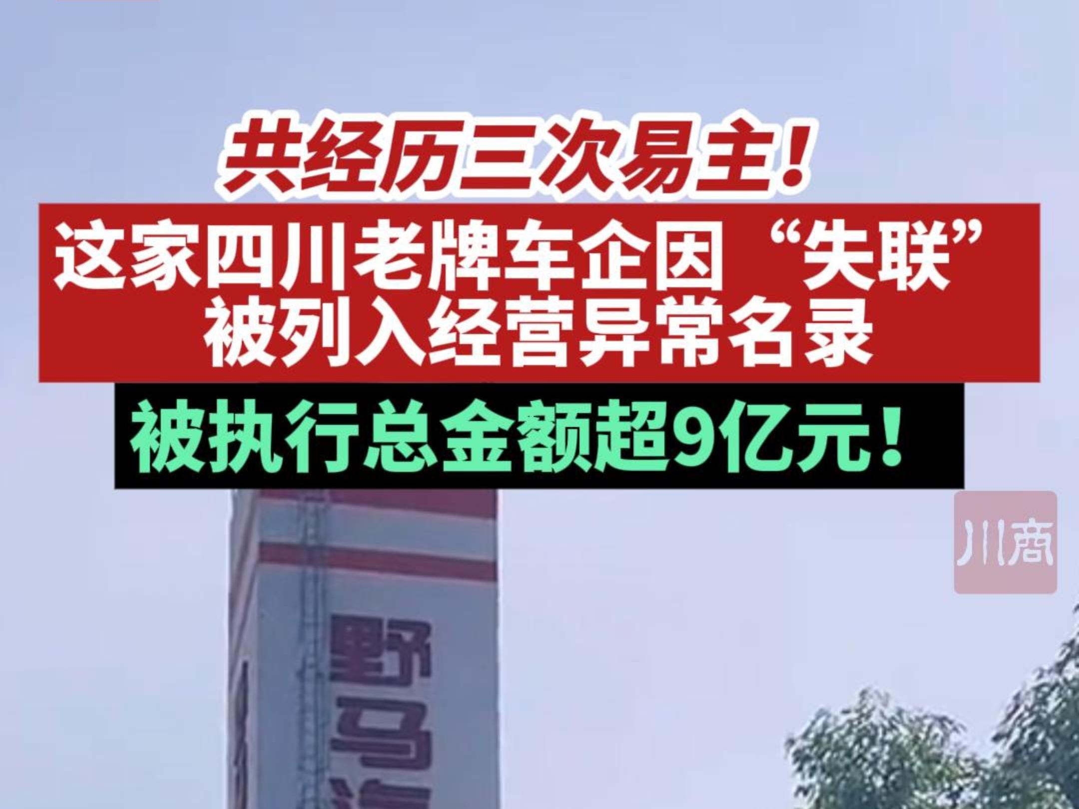 四川野马汽车因“失联”被列入经营异常名录!