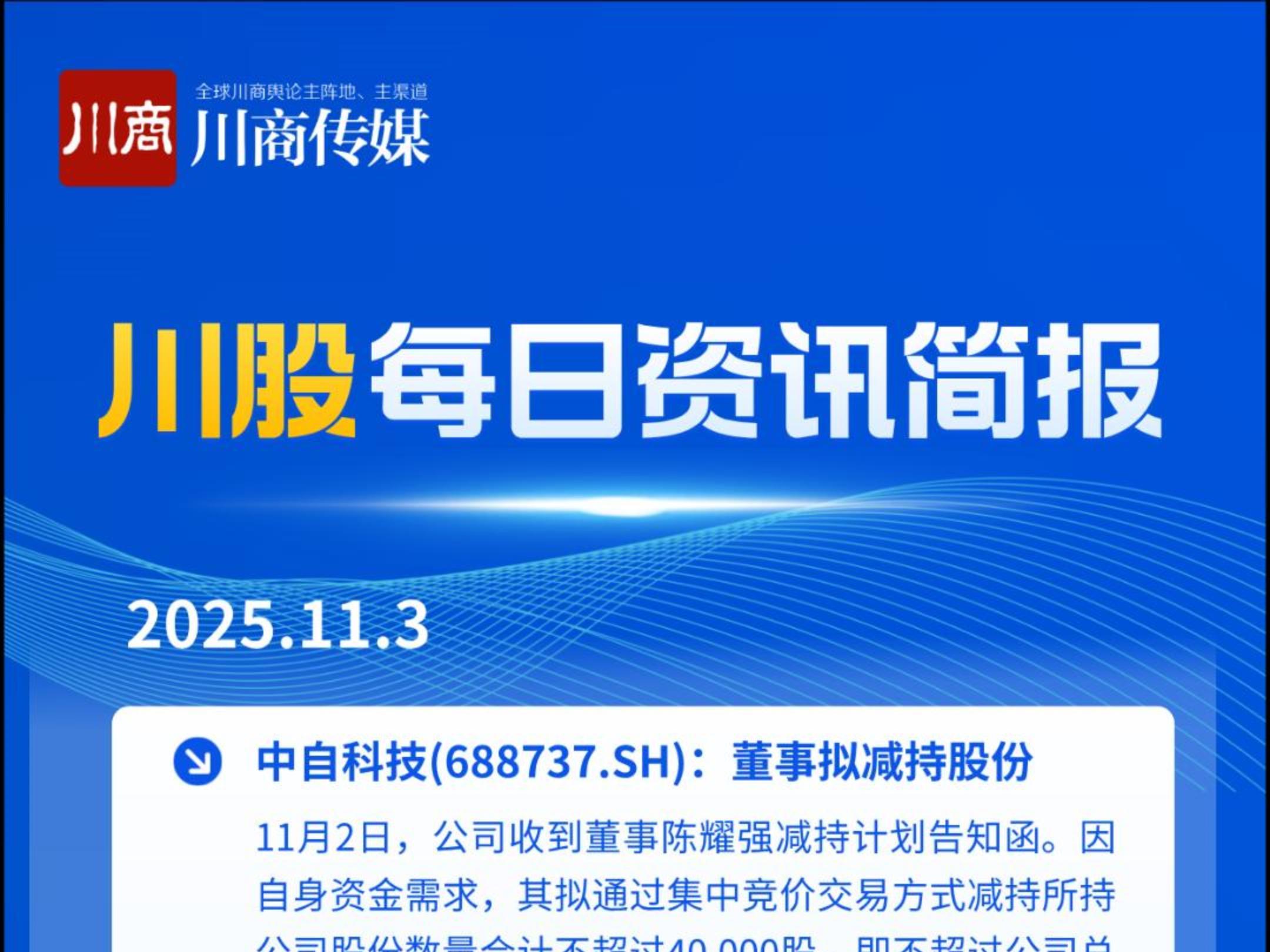 川股快讯:涉中自科技、盛新锂能、帝欧水华、宜宾银行等公司