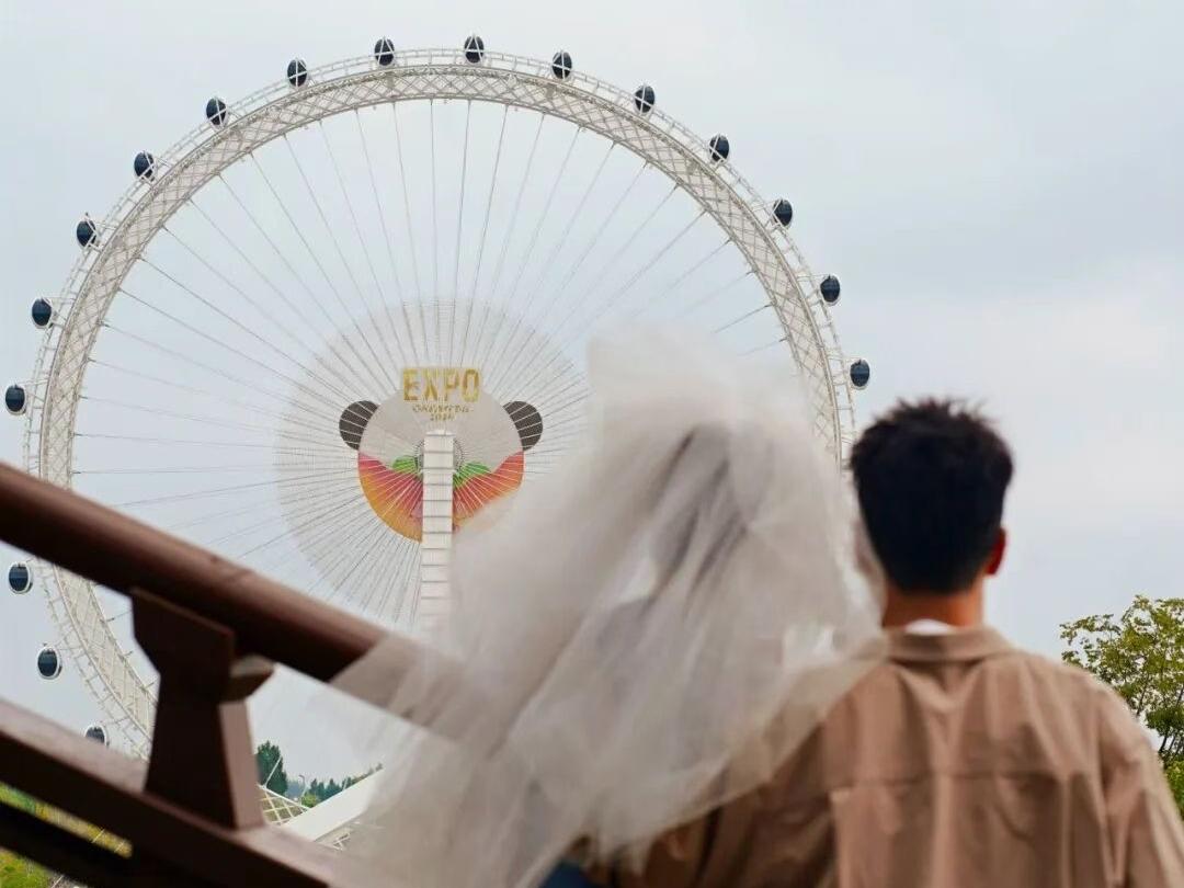 蓉城囍事丨超甜!成都世博园摩天轮变身灯光“告白墙”