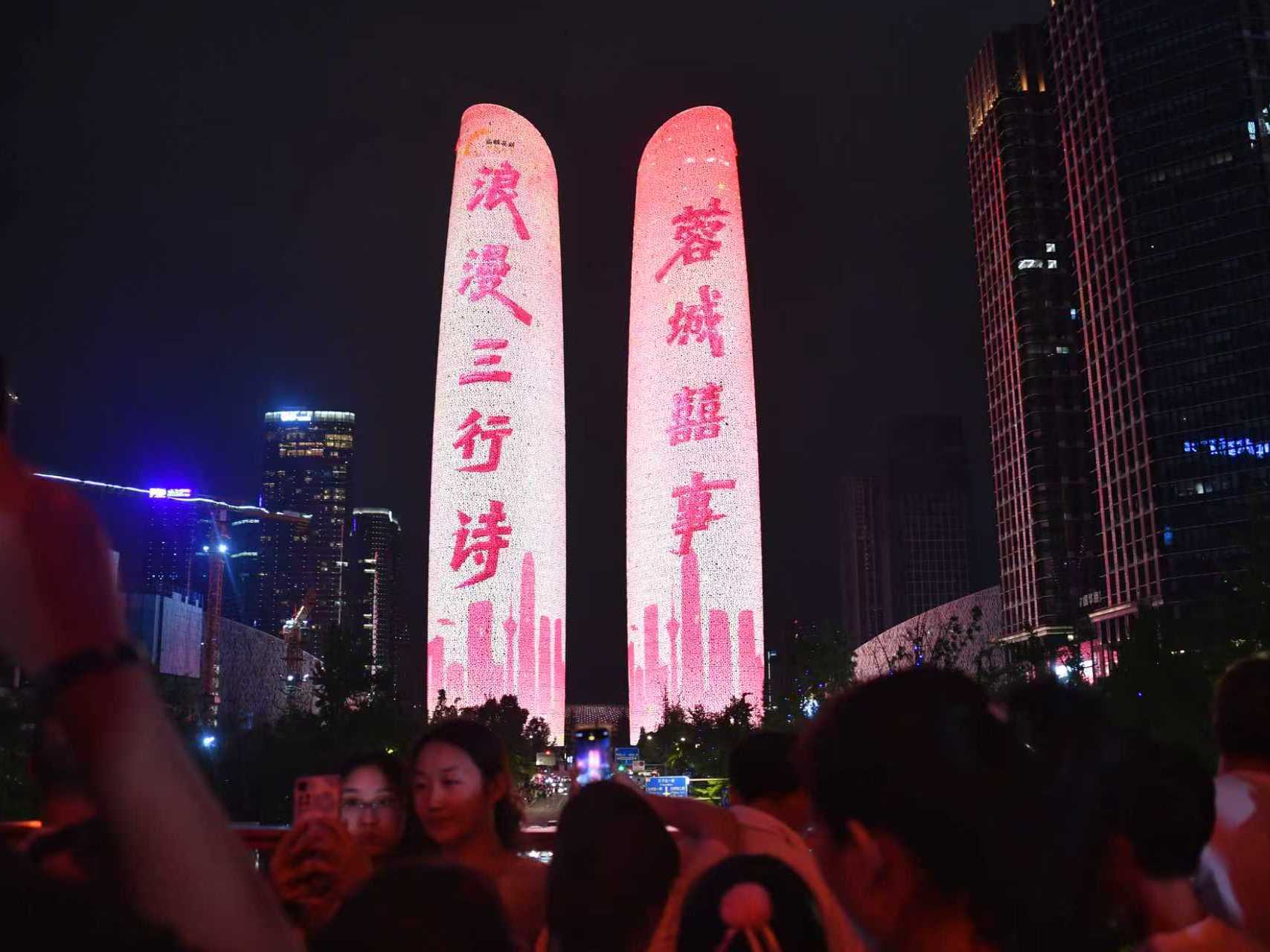 天府双塔亮起“浪漫三行诗” 50对新人以光影告白家国丨蓉城囍事