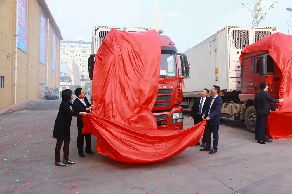 广安栆山物流商贸园区——防城港市东湾物流园区冷链物流合作首发接车。