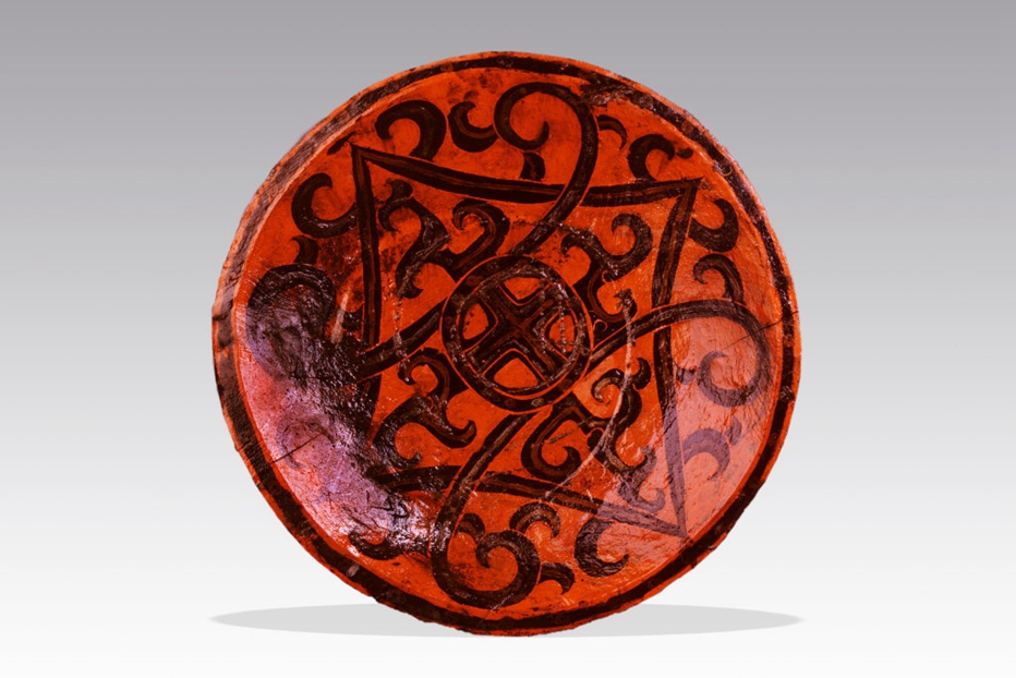 床身以红黑两色绘制着繁复纹饰