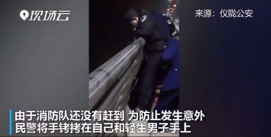 四川南充一男子轻生跳桥,松开护栏时被民警抓住。因担心手滑,民警就用手铐把自己和他拷在一起,直到消防队赶来将人救下。