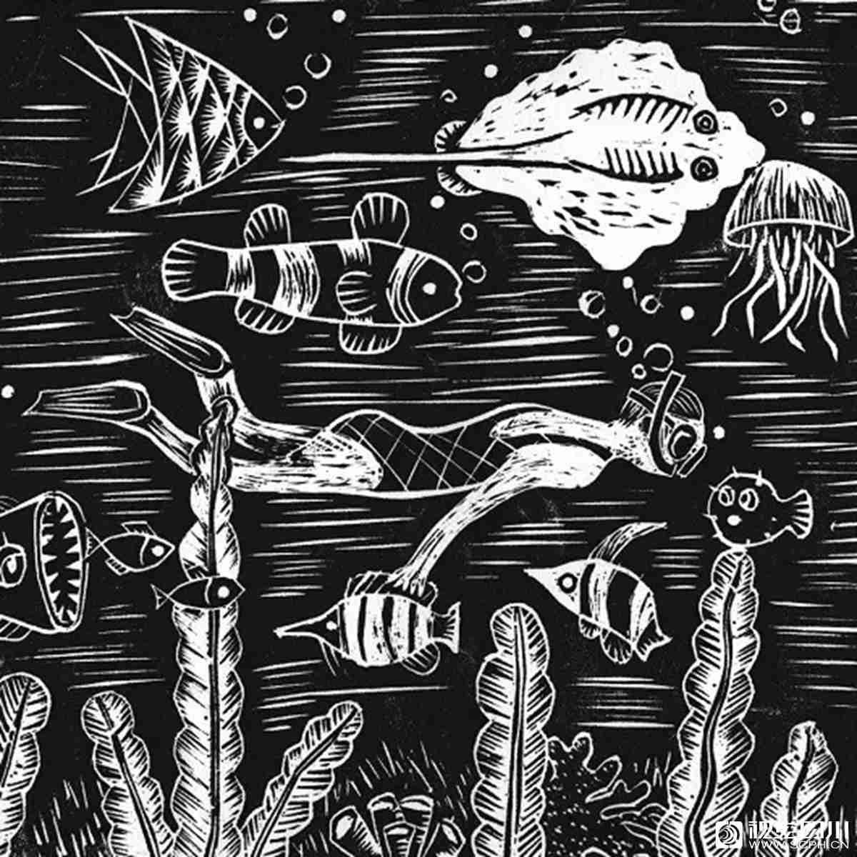 在清凉的水池里,仿佛尝到了海水的咸味,