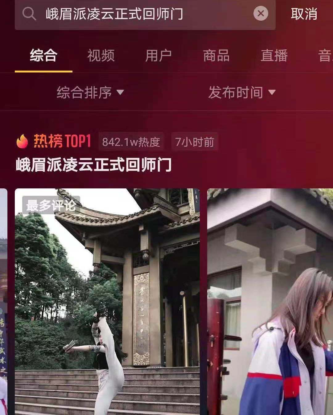 4月26日,一段英姿飒爽的武术视频在抖音火了!截至20:00,在看人数已达到4932万,“峨嵋派凌云正式回师门”冲上抖音热搜第一。