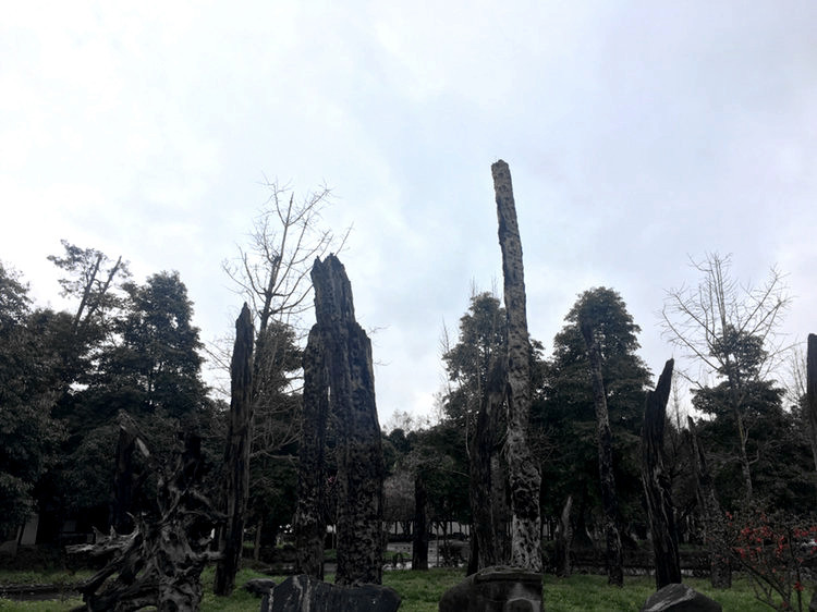 成都乌木艺术博物馆坐落在都江堰中兴镇,占地80余亩,是四川首家正式批准成立的非国有博物馆,其展品数量之众、种类之丰,堪称“乌木王国”。在博物馆外的太极广场,数十件乌木作品矗立在绿树花草中;步入博物馆内,动辄数米高、树根直径好几米的乌木展品,或乌黑透亮,或灰褐如云,或红似玛瑙,或灿若黄金,恍然间好像进入远古的世界。