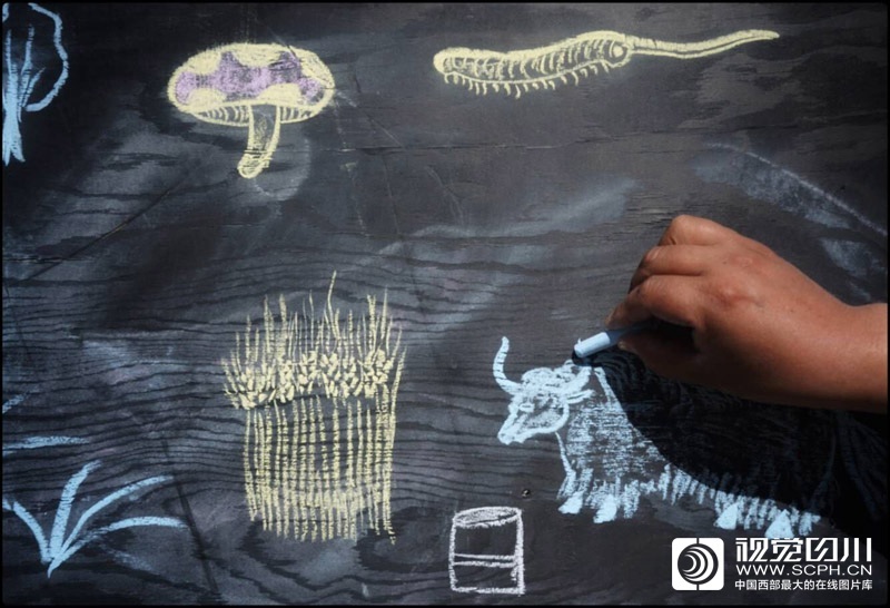 巴桑呷瓦用粉笔在黑板上用形象的白描绘画结合生动的言语,宣讲党的政策和国家法律法规,为农牧民描绘脱贫致富蓝图。