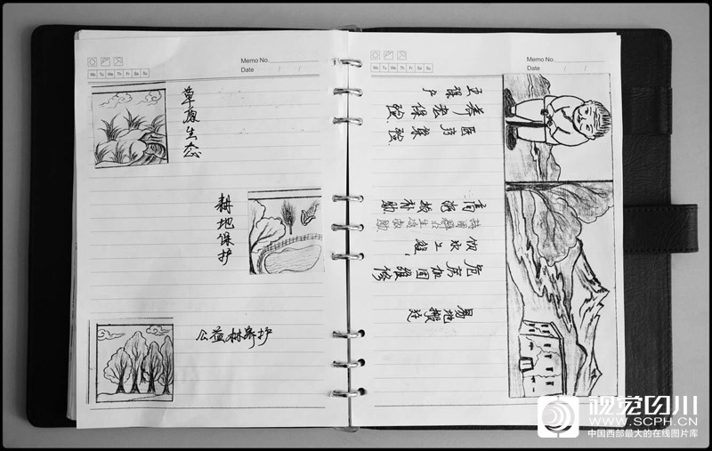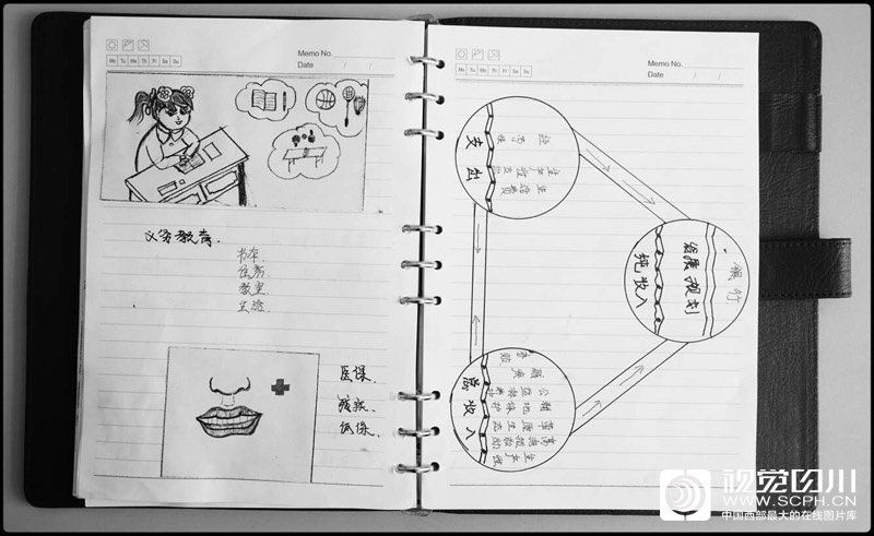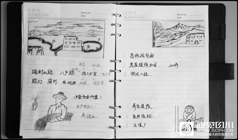 他的脱贫攻坚笔记本上画满了各种政策解读的简笔画。