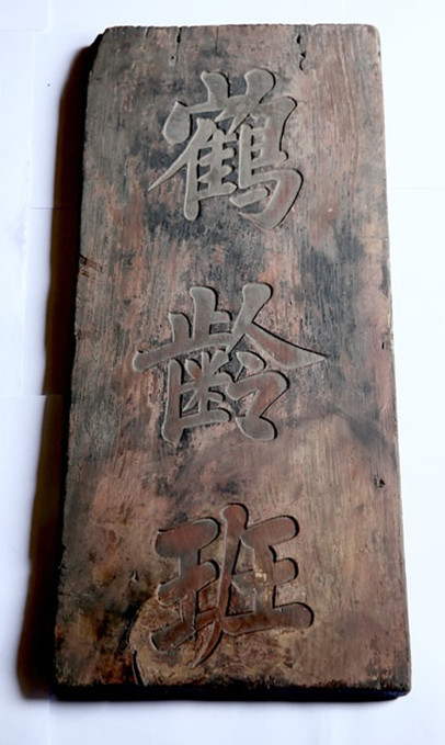在成都“三庆会”之外,众多的戏班一直在全省各地茁壮生长。博物馆的“镇馆之宝”,据说是乾隆年间泸州地区戏班“鹤龄班”的班牌。“鹤龄班”是一个高腔戏班,在当地延续了上百年,直到1898年才解散。这块戏班班牌,也以实物方式证明了在川剧诞生以前以戏班方式存在的状态。