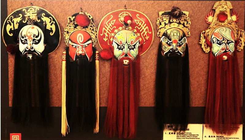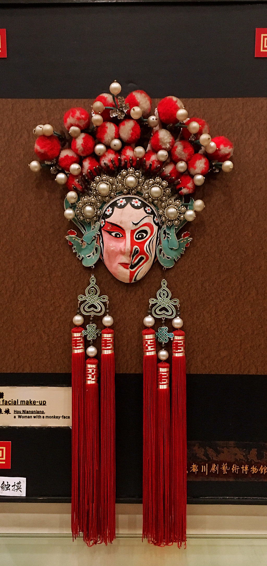 在博物馆的“犁园簇锦”厅,众多的川剧脸谱也是特色十足。财神爷的脸,就画了古钱币的形象,极具辨识度;陈仓老魔让人望而生畏,于是脸谱被做成一半人脸一半鬼脸;道教最尊崇的护法尊神灵官拥有强大法力,于是额头上再画一眼顿显威风凛凛……很多川剧老戏迷只要看到这些特定的场景或脸谱,基本上就能判断演出什么剧目。
