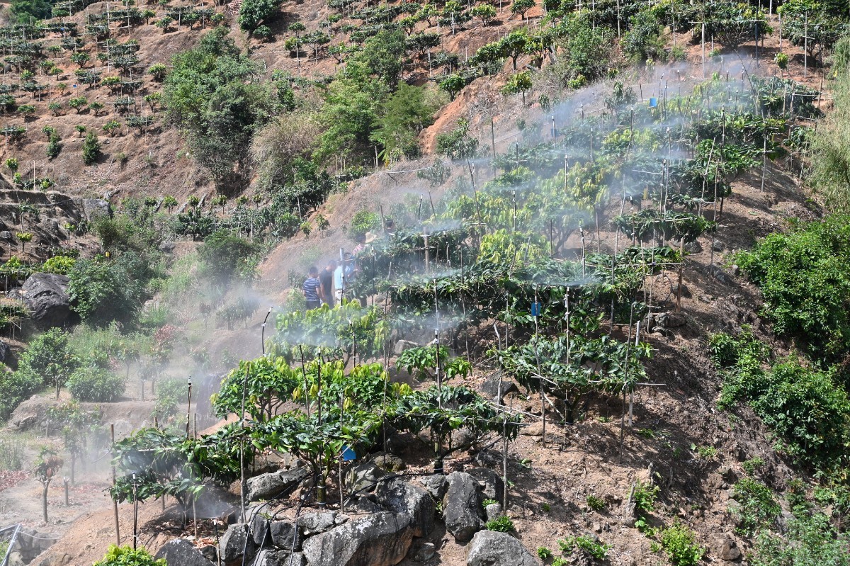 在芒果地里,徐庆国为大家演示了系统的灌溉效果。