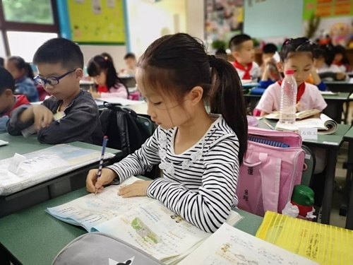 成都行知小学的学生在课后服务期间安静地做作业。图片由学校提供
