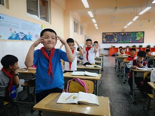 成都行知小学的学生在课后服务期间做健脑操。图片由学校提供