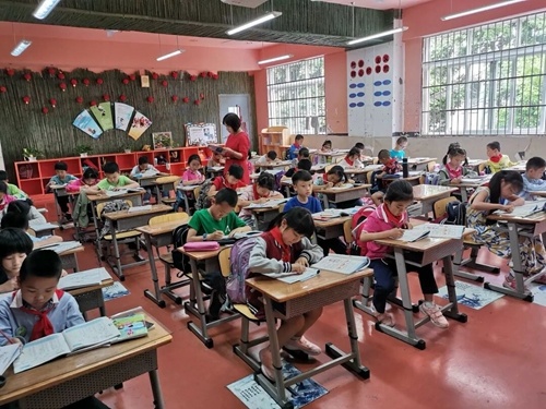 5月5日下午3点半,成都行知小学进入课后服务时间,全校有三分之二的学生参加。除了六年级是合班外,其他年级都是本班托管,由本班老师组织。