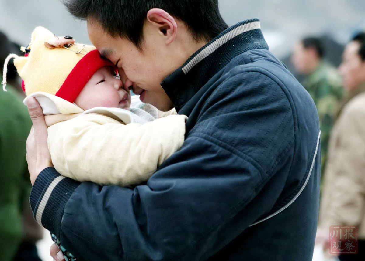 2009年1月25日,四川映秀,大年三十当天,一位父亲正在逗刚刚换上新衣的小宝宝。