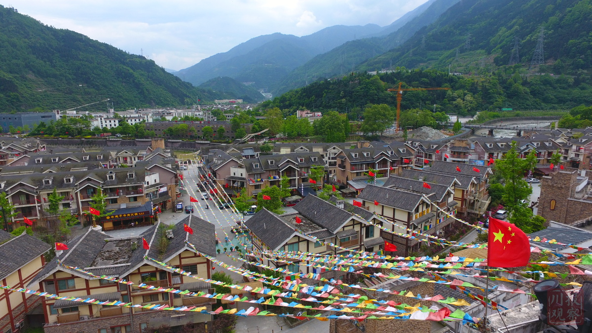 每逢重要节假日,映秀镇家家户户都会挂起国旗,