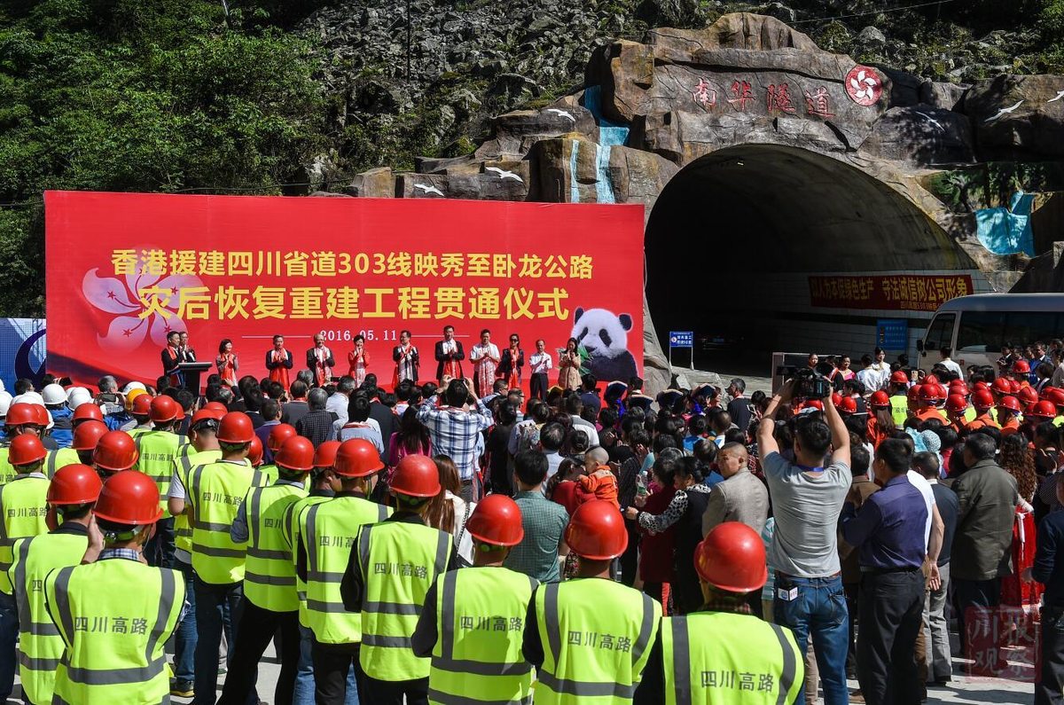 2016年5月11日,香港援建四川省道303线映秀至卧龙公路灾后恢复重建工程正式贯通。