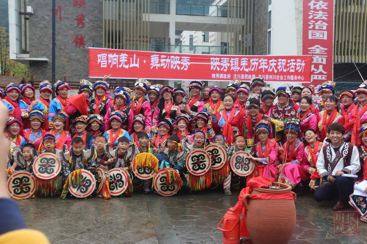 2015年11月12日,是羌历新年,汶川县映秀镇举行了唱响羌山,舞动映秀的庆祝活动,当地老百姓和游客有近千人参与了跳羌舞,游映秀活动。