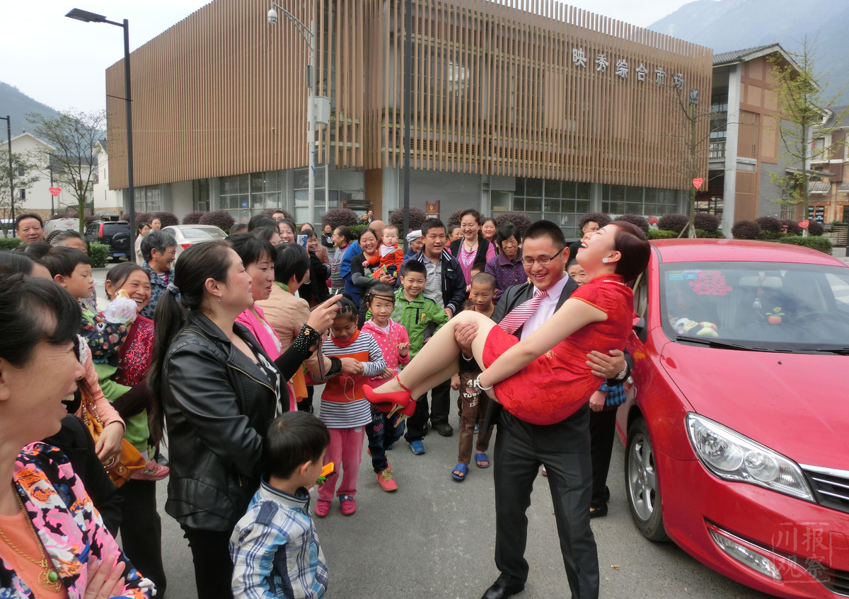 2013年10月6日,映秀镇上,一对新人举办了一场节俭的新式婚礼。