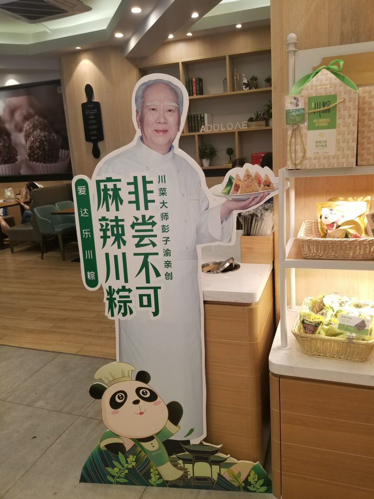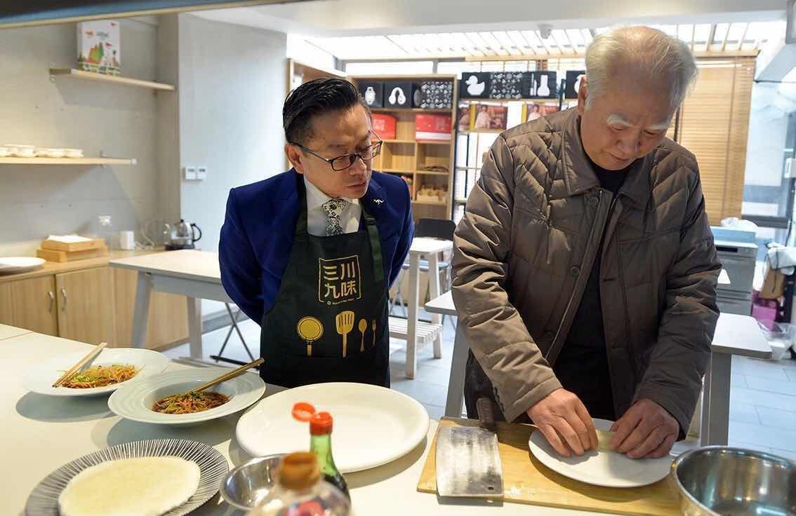 川菜大师彭子渝手端一盘粽子,“站”在一家蛋糕店里,笑容可掬、亲切和蔼,尤其是一对白眉,浓而长,犹如武侠小说中“白眉大侠”的现实版本,拥有在人群中的高辨识度。