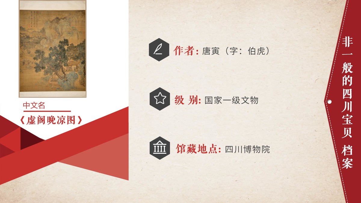 不过,四川博物院馆藏的一幅唐伯虎图轴《虚阁晚凉图》,在完全没有收藏者印章的情况下,被专家们纷纷鉴定为真迹,它也因其尺幅之大、绘画之工,成为四川博物院书画类作品中的珍品。