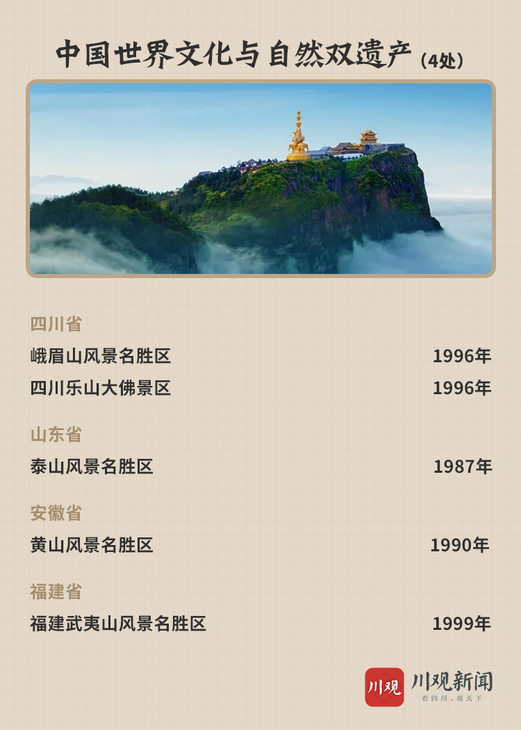 (注:峨眉山-乐山大佛景区属联合申报,为一处遗产)