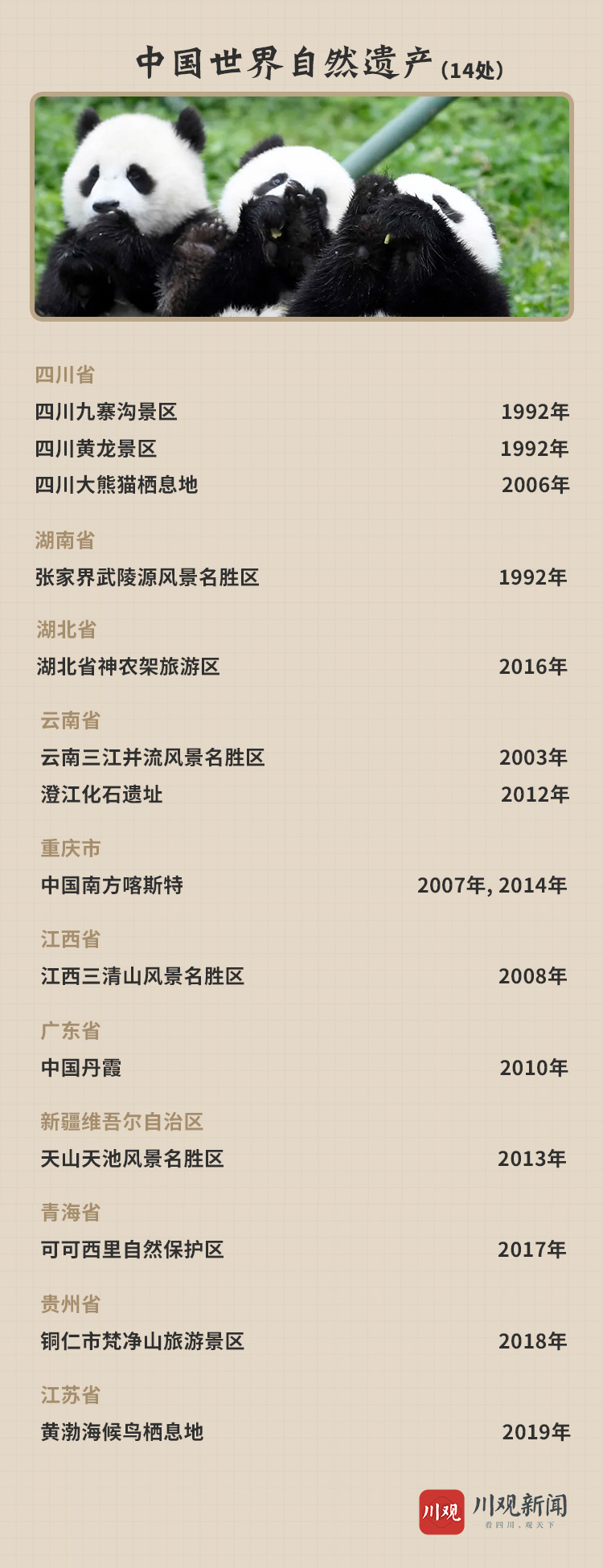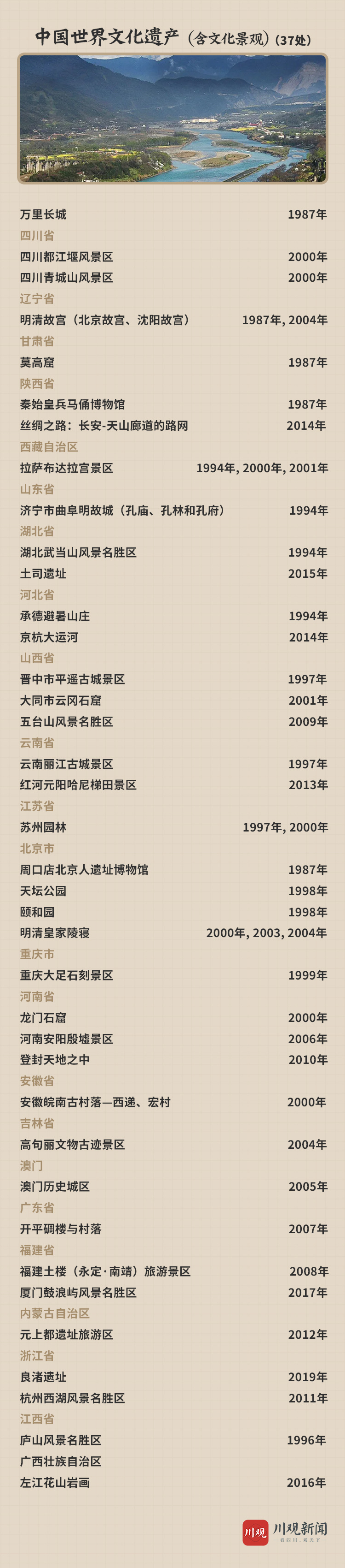 (注:四川青城山-都江堰风景区属联合申报,为一处遗产)