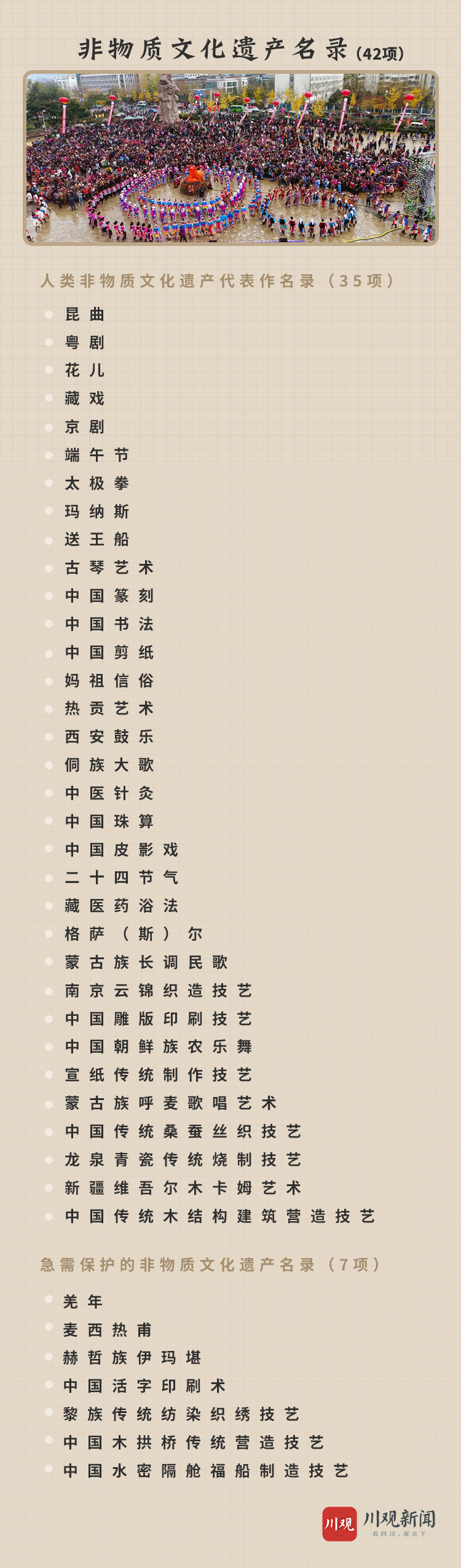 (注:人类非物质文化遗产代表作名录还包括南音和中国蚕桑丝织技术2项)
