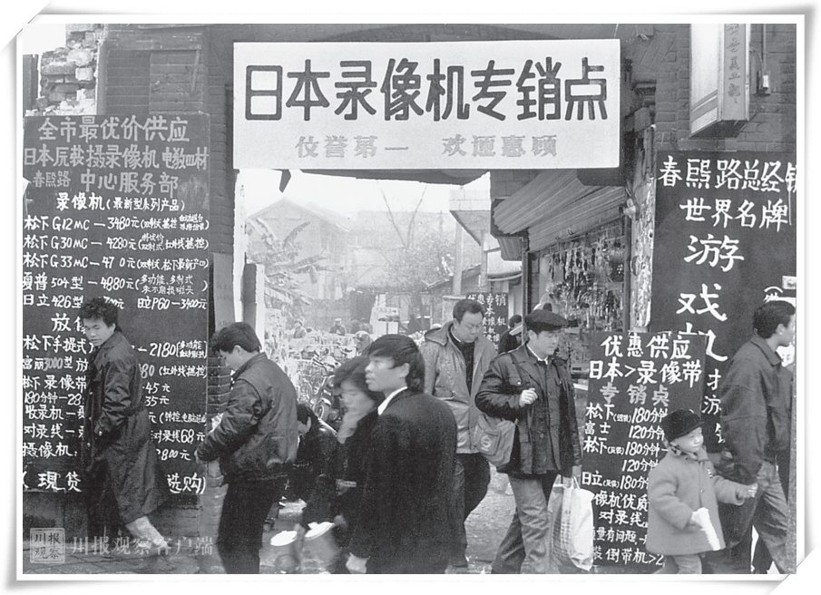 1985年,春熙路北段的进口电器专销点 王晓庄 摄