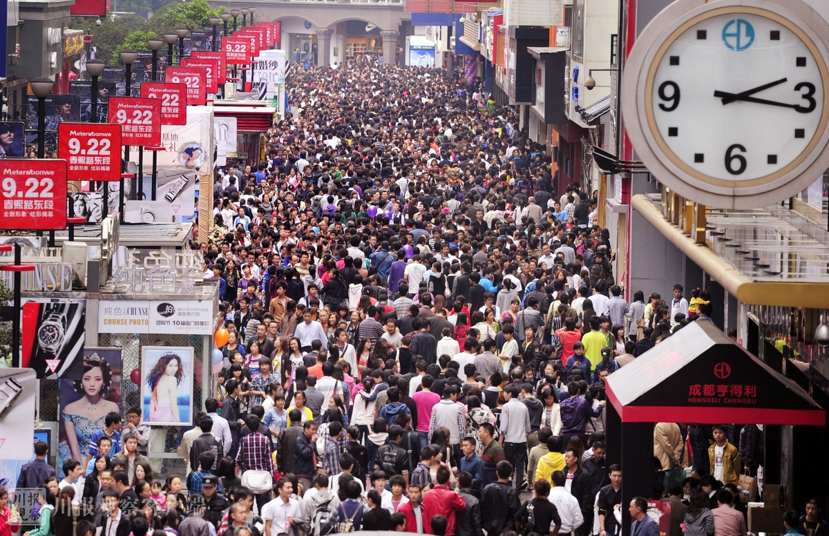 2002年,国庆黄金周每天约有40万人次走过春熙路 原四川日报记者余坪 摄