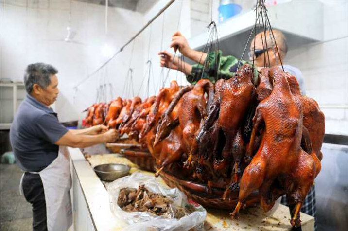 “为了保证新鲜,我们做甜皮鸭的时间都是选择在凌晨。”潘文全说,早起成为他每天的必修课,“杀鸭子、清理、卤鸭子、烫皮等,所有工序都要亲力亲为。”多年的坚持已成为潘文全的一种生活习惯,每当看到当天所有货卖完时,那种内心的成就感鼓舞着他一如既往地努力工作。