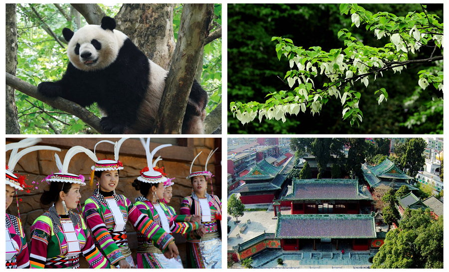 平武“四大活化石”—大熊猫、珙桐、白马人、报恩寺(胡宇制图)